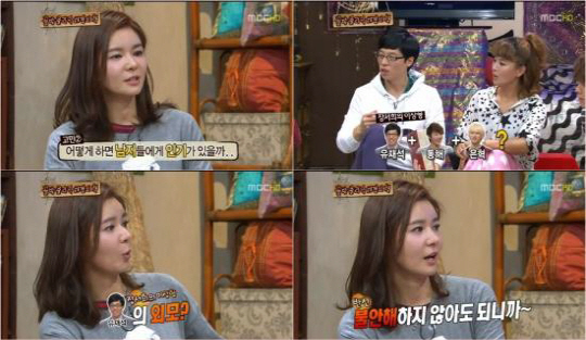 특히 장서희는 "외모적 이상형은 유재석"이라고 강조했다. 이유를 묻는 MC들에게 장서희는 "불안해하지 않아도 되니까"라고 답해 좌중을 폭소에 빠뜨렸다.