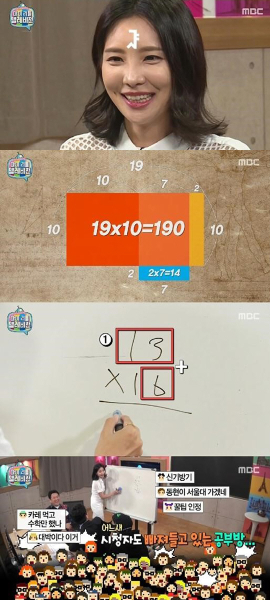 이날 김구라 방송에 출연한 지주연은 서울대 언론정보학과 출신 배우다. 지주연은 자신의 수학 공부 비법인 '베다수학'의 원리에 대해 도형으로 설명했다.