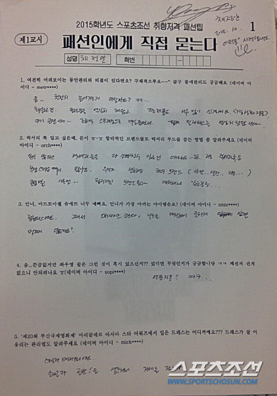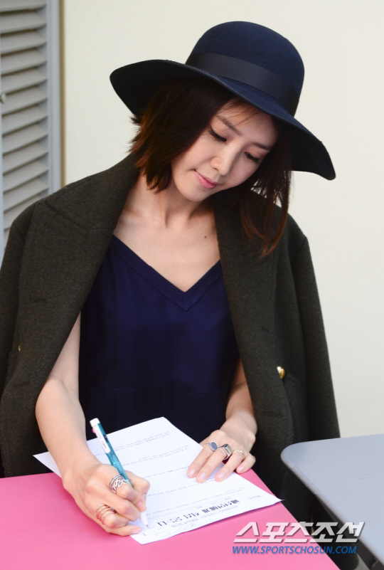채정안이 패션인의 질문에 답을 적고 있다. 사진=정재근 기자 cjg@sportschosun.com/2015.10.19/