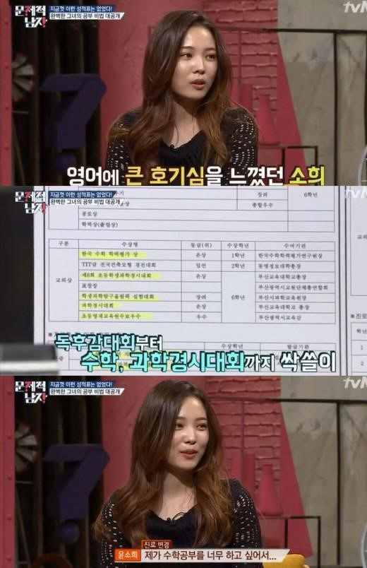 과학고 출신, 카이스트 재학 중이라는 화려한 스펙을 소유하고 있는 윤소희는 이날 생활기록부를 공개했다.