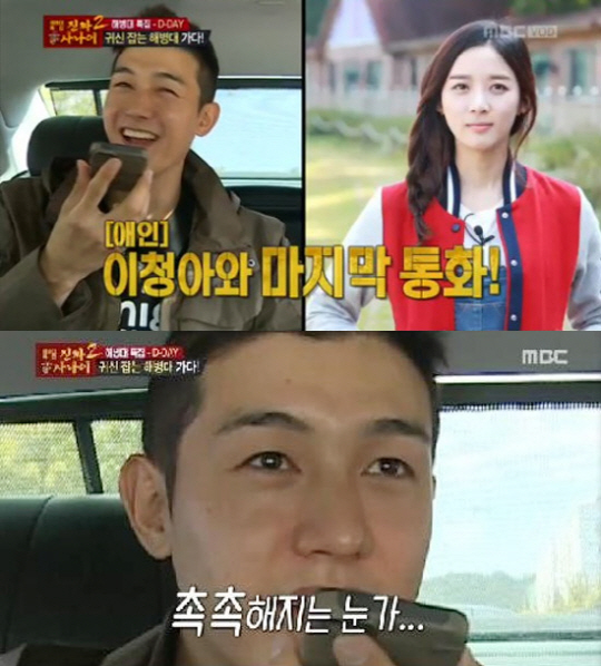 이기우는 "해병대 훈련소 한 5분 전이다"고 말했고, 이청아는 "어떡해"라고 걱정했다.