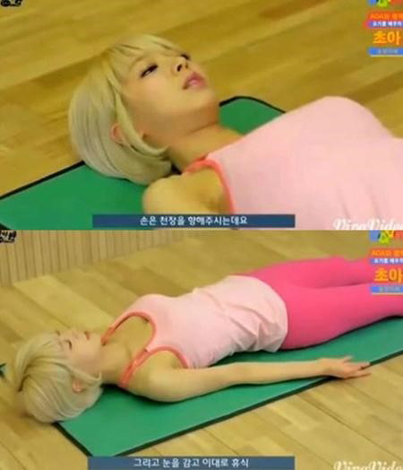 당시 공개된 영상 속에서 초아는 핑크색 민소매티셔츠와 레깅스로 건강하면서도 섹시한 매력을 발산했다. 특히 초아는 누워도 굴욕 없는 남다른 볼륨감으로 시선을 사로잡았다.