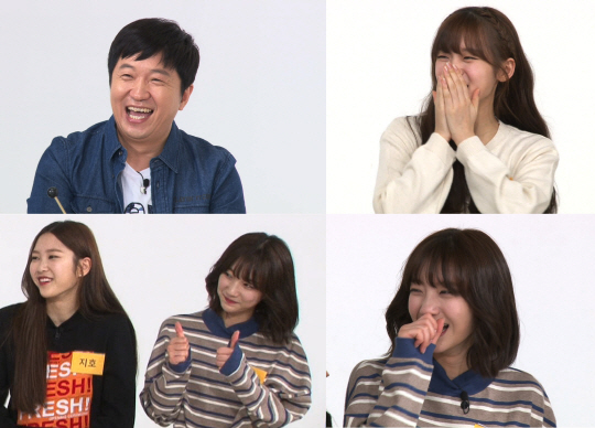 특히 '주간아이돌'의 MC 정형돈을 롤모델로 꼽아왔던 막내 아린은 정형돈과의 첫 만남에 설렘을 감추지 못하며 "너무 존경한다"라고 소감을 전했고, 멤버 비니는 너무 긴장한 나머지 정형돈을 향해 '선생님'이라는 호칭을 써 폭소를 자아냈다.