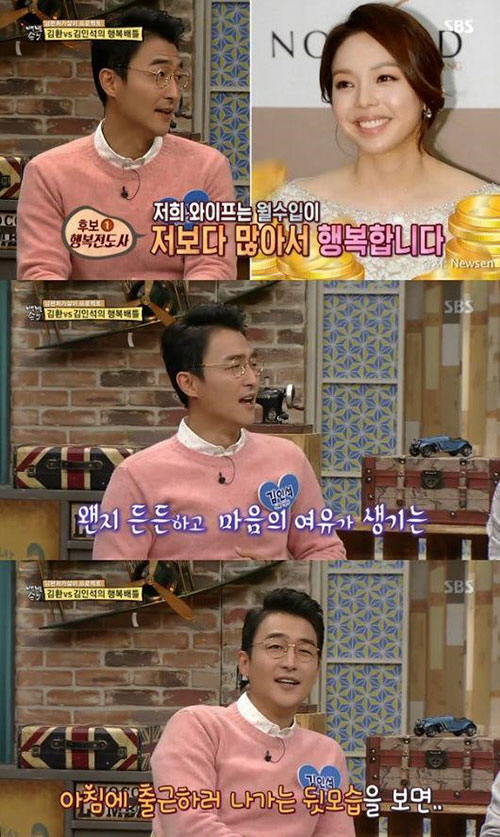 이날 김인석은 "우리 아내 안젤라박은 미인대회 출신이다. 아내가 미인이라 행복하다. 미스 하와이 진이다"라며 "자고 일어나면 옆에 미스코리아가 누워있다. 화보다"라고 아내 안젤라 박을 자랑하며 닭살애정을 드러냈다.