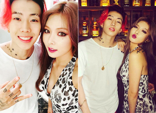 공개한 사진에는 입술을 내민 섹시한 포즈를 취하고 있는 현아의 허리를 다정히 감싼 박재범의 다정한 모습이 팬들의 시선을 사로 잡고 있다.