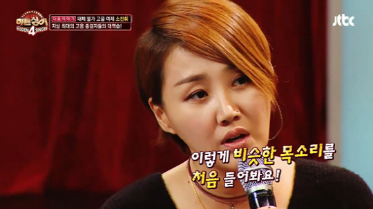 이날 연예인 판정단들은 소찬휘 뺨치는 실력자들의 '고음 전쟁'에 "고음만 놓고 봤을 땐 원조 가수와 모창능력자를 구분해내질 못하겠다"고 밝혔다. 과연 소찬휘의 고음에 도전장을 내민 모창능력자 5인의 실력은 어떨지는 오는 7일 토요일 밤 11시에 방송되는 JTBC '히든싱어4'에서 확인할 수 있다. <스포츠조선닷컴>