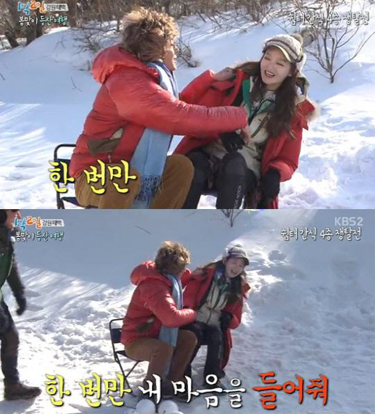 배용준 역의 김주혁은 그윽한 눈빛을 발사하며 키스신을 위해 최지우 역의 강민경에게 다가갔다. 하지만 강민경은 뒤로 몸을 빼며 키스를 거부했고, 김주혁은 애가 타는 듯 "한번만"이라고 말해 출연진들을 폭소케 했다.