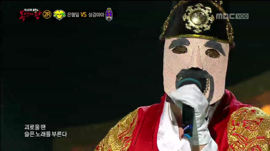 지난 주 처음으로 등장한 '상감마마 납시오'는 1라운드부터 폭발적인 가창력을 보여주며 '마늘 중독 뱀파이어(송필근)'을 제치고 승리했다.