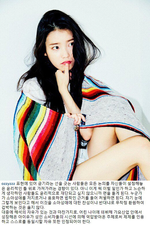 이어 "대중에 해석의 자유가 있는 것과 마찬가지로, 어린 나이에 데뷔해 가요산업 안에서 성장해온 아이유가 성인 소비자들의 시선에 의해 억압받아온 주체로써 제제를 인용하고 스스로를 동일시할 자유 또한 인정되어야 한다"고 덧붙였다.