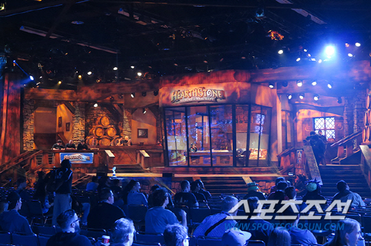 하스스톤은 게임 자체가 여관에서 이뤄진다는 콘셉트에 착안해 무대를 따뜻하고 안정적인 분위기로 연출했다. 선수들의 배치도 기존 RTS 형태의 개별 부스에서 단일형 부스로 변화를 줘 선수간의 심리전이 가능하게끔 만든 것이 특징이다.