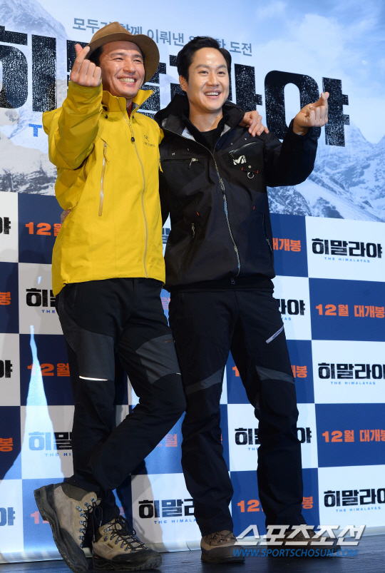 배우 황정민과 정우가 9일 압구정CGV에서 열린 영화 '히말라야'의 제작발표회에서 포토타임을 갖고 있다. 압구정 =최문영 기자deer@sportschosun.com /2015.11.09/