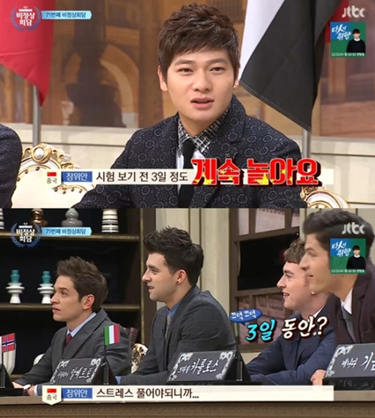 '비정상회담' 장위안이 중국에서는 "수능을 앞두고 3일 전 계속 논다"고 말했다.