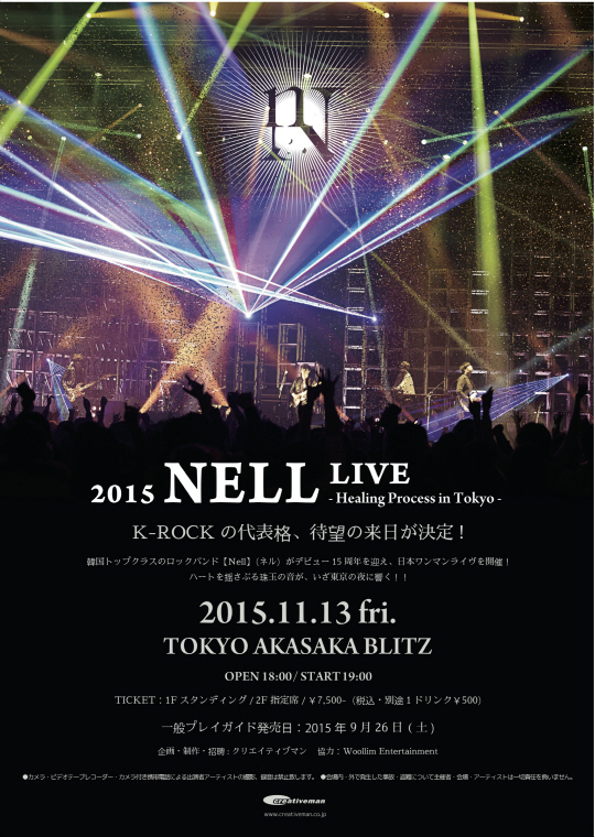 소속사 울림엔터테인먼트에 따르면 밴드 넬은 오는 13일 일본 도쿄 아카사카 블리츠(BLITZ)에서 일본 첫 단독 콘서트 '2015 넬 라이브 힐링 프로세스 인 도쿄(2015 NELL LIVE ~ Healing Process in Tokyo~)''를 개최하고 팬들과 만난다.