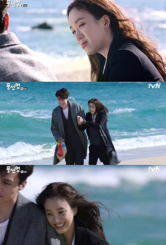 10일 방송된 tvN 월화드라마 '풍선껌' 6회에서는 박리환(이동욱 분)과 김행아(정려원 분)가 바닷가 데이트를 즐기는 모습이 그려졌다.