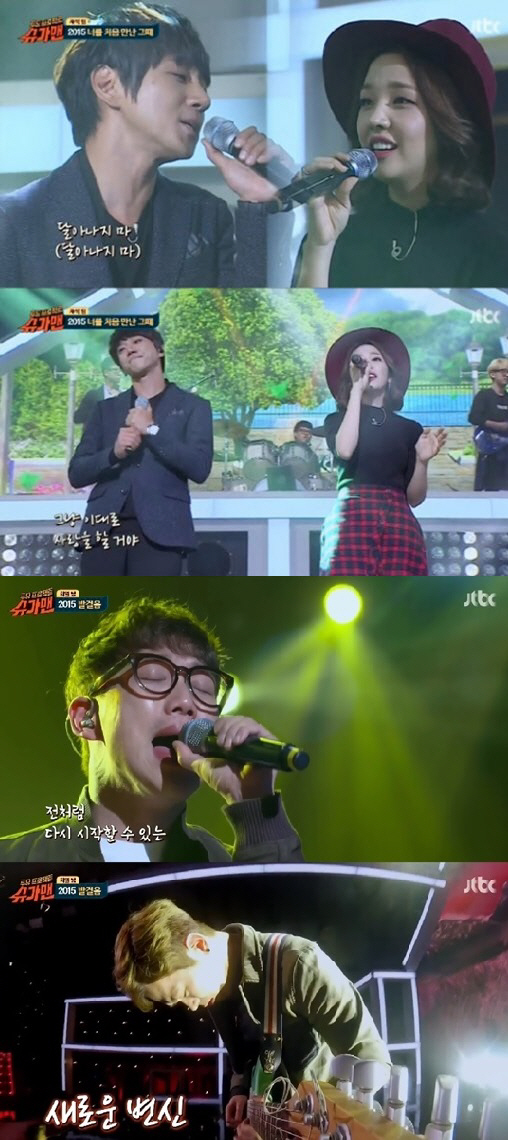 지난 10일 방송된 JTBC '투유 프로젝트-슈가맨'(이하 '슈가맨')에서는 가수 박준하와 애메랄드 캐슬 지우가 '슈가맨'으로 출연했다. 유재석 팀과 유희열 팀은 각각 '너를 처음 만난 그때'와 '발걸음'을 '슈가송'으로 선정해 멋진 무대를 선보였다.