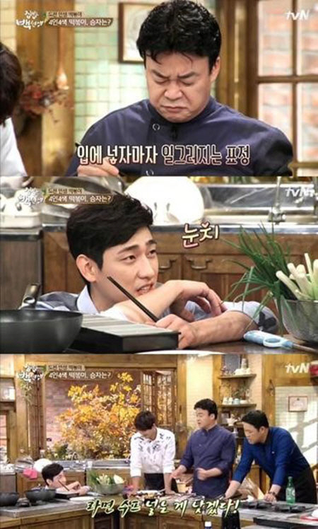 맛 평가 시간에 백종원은 윤박의 떡볶이를 입에 넣은 직후 곧바로 표정이 일그러져 웃음을 자아냈다. 백종원은 "이 떡볶이를 먹으니까 내 입맛을 잃을 것 같다. 어느 요리 프로그램이든 하다 하다 안 되면 라면수프를 넣지 않냐. 라면수프를 넣어야겠다"고 말해 윤박을 당황케 했다.