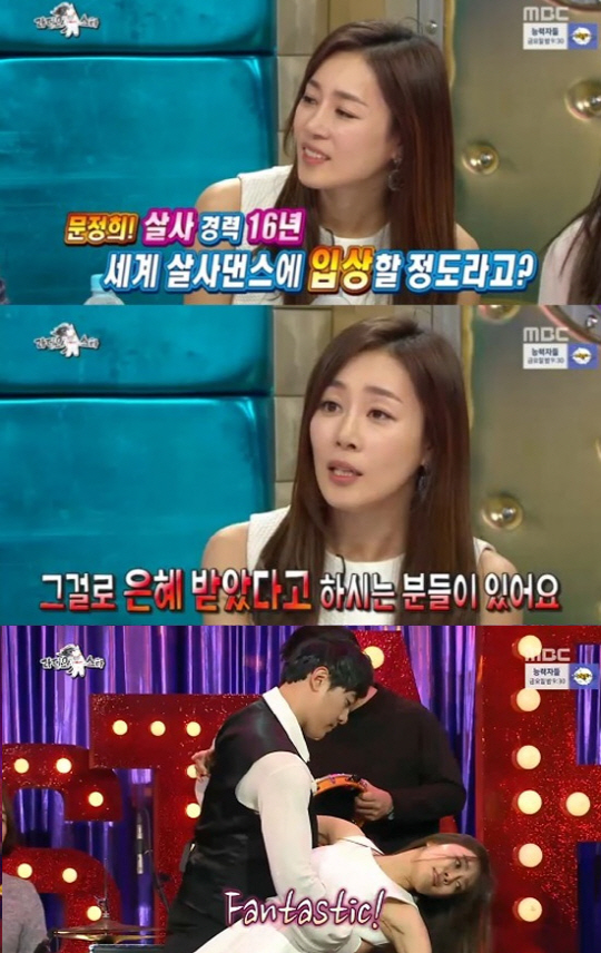 '라디오스타' 문정희가 살사 실력을 공개했다.