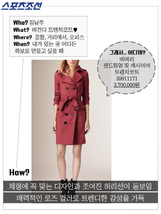 #어디꺼 #스포츠조선 #김남주 #트렌치코트 #남다른_빛깔의_남주언니_트렌치 #핑크말고로즈 #화보패션완성 #버버리