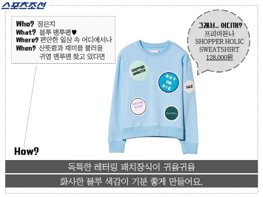 [어디꺼] '발칙하게 고고' 정은지의 화사한 블루빛 패치 맨투맨?
