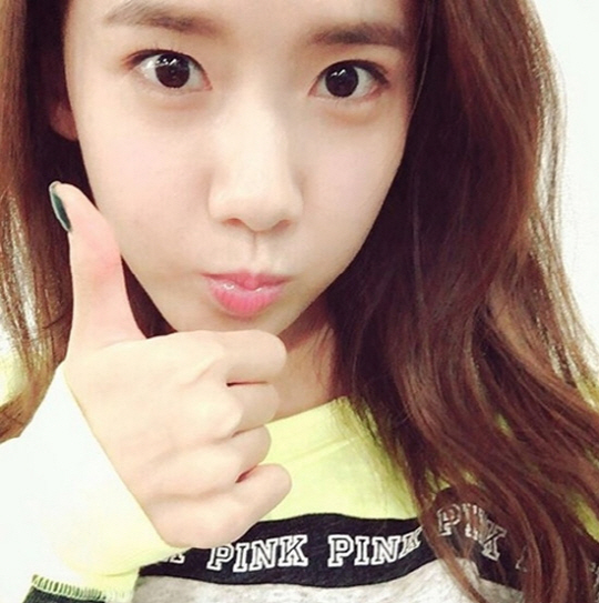 공개된 사진 속 윤아는 엄지 손가락을 치켜든 일명 '엄지 척' 포즈를 취하고 있는 모습이다.