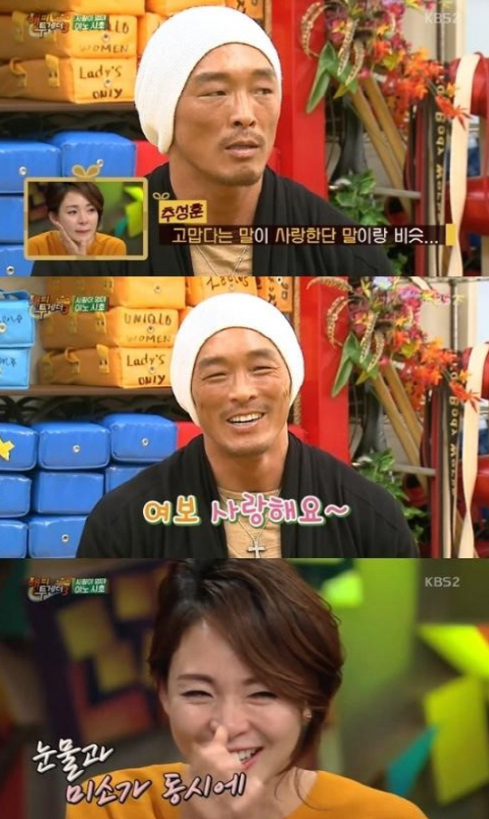 '해피투게더3' 추성훈이 아내 야노시호에게 감사의 마음을 전했다.
