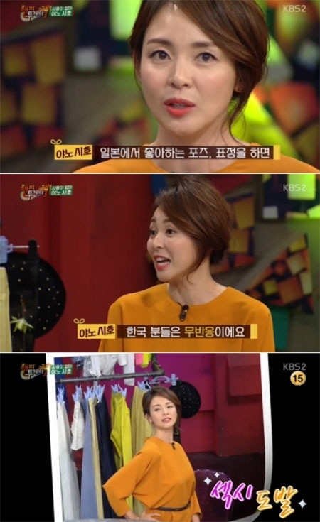 이날 야노 시호는 일본과 한국 모델활동 차이를 묻자 "일본과 한국은 추구하는 여성상이 다르다. 한국은 섹시하고 여성스러운 모습을 좋아하는데 일본은 귀여운 이미지를 좋아하고 인기가 많다"고 말했다.