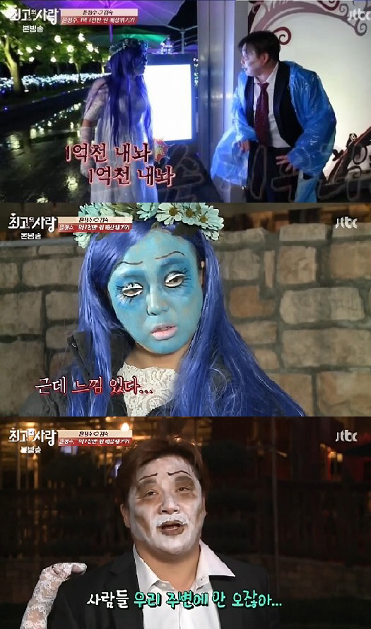 놀이기구 운행이 심해지고 김숙은 더욱 두려움에 떨었고, 이때 윤정수는 자연스럽게 김숙의 후드를 씌어주고 머리에 손을 얹어주며 달래줬다. 하지만 그런 다정한 모습을 보인 것도 잠시, 놀이기구에서 내려온 이들은 또 다시 언제 그랬냐는 듯이 아웅다웅했고, 할로윈 데이를 맞아 얼굴에 귀신 분장을 한 서로에게 "니가 더 무섭다"며 독설을 내뱉었고 이 모습은 시청자에게 웃음과 공감을 자아냈다.