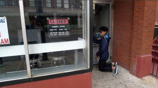 공개된 사진 속 류준열은 아직 오픈을 하지 않은 가게 앞에서 문고리를 잡고 무릎을 꿇고 있다. 특히 류준열은 멍하니 어딘가를 응시하고 있어 웃음을 유발하고 있다.