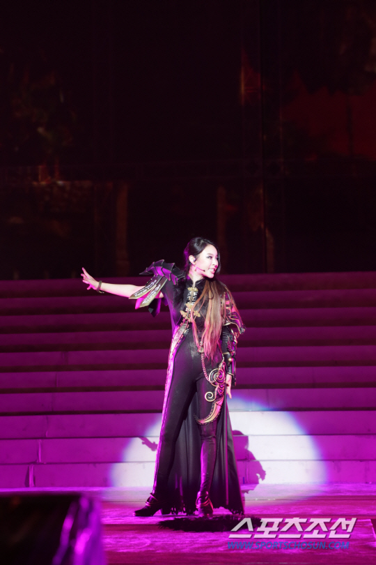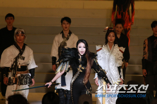 '진서연' 역을 맡은 가수 리사가 13일 부산 영화의 전당 특설무대에서 열린 뮤지컬 '묵화마녀 진서연'에서 열창을 하고 있다. 사진제공=엔씨소프트