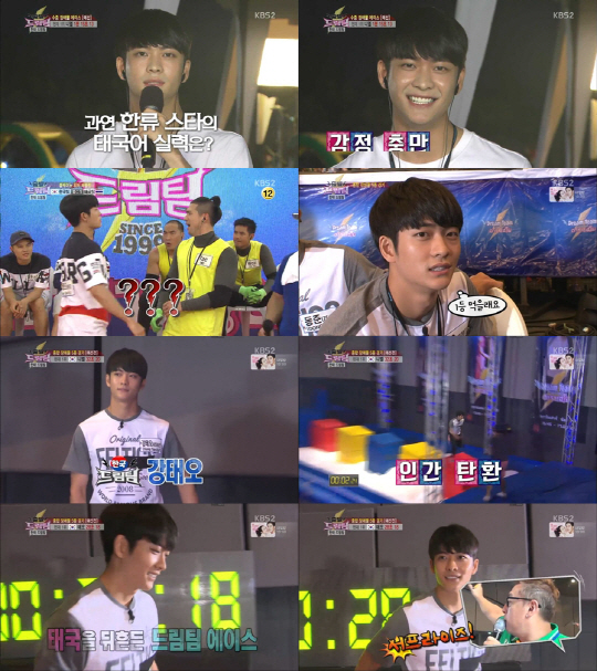 한태 드림팀 제1탄인 '수중 장애물 경기' 편에서는 태국 MC 쿤긱의 목소리에 맞춰 능청스럽게 태국말 립싱크 인사를 선보여 안방 시청자들에게 웃음을 선사했고, 귀여운 윙크로 여성 출연자들의 마음을 사로잡았다. 제2탄 '볼케이노 워터레슬링'에서는 본인의 가슴을 연달아 타격하는 절권도 시범으로 친근하면서도 엉뚱한 매력을 발산하기도 했다. "지금까지는 애매한 기록만 세웠는데 제대로 된 기록을 세우고 싶다"고 욕심을 드러낸 종합장애물 5종 경기에서는 정확하고 재빠른 동작으로 28초18 기록을 세우며 니엘(32초 20)을 제치고 1위를 차지했다.