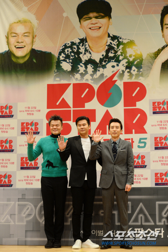 16일 오후 서울 양천구 목동 SBS에서 'K팝스타5' 제작발표회가 열렸다. 이날 행사에는 양현석, 박진영, 유희열 등 심사위원 3인방과 박성훈PD가 참석해 자리를 빛냈다.