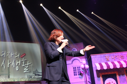 박경림이 14일 부산 해운대 센텀시티 소향아트홀에서 열린 토크콘서트 '여자의 사생활' 무대에 올라 관중과 소통하고 있다. 사진제공=코엔스타즈