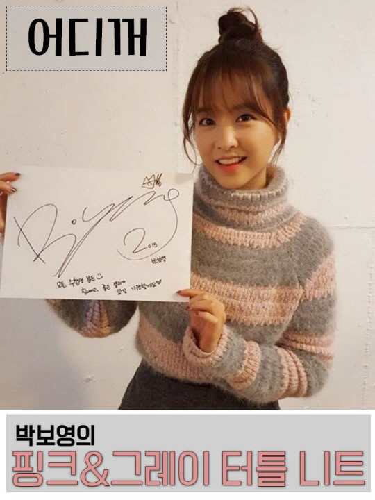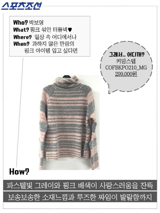[어디꺼] 박보영의 러블리한 파스텔 핑크 스트라이트 터틀넥?