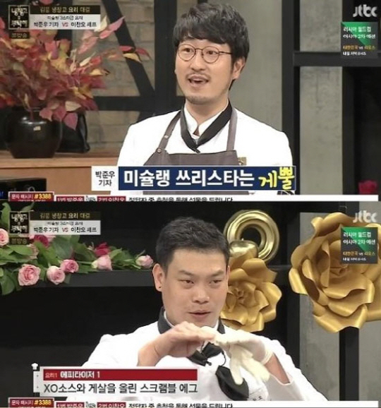이날 냉장고 주인 김풍의 '미슐랭 3스타급 요리' 제안에 박준우 기자와 이찬오 셰프가 대결을 펼쳤다.