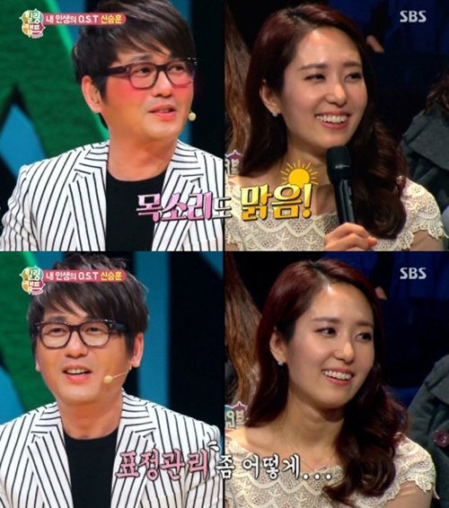 이어 신승훈은 정주희 기상캐스터가 평소 좋아한 곡 '전설 속의 누군가처럼'을 열창했다. <스포츠조선닷컴>