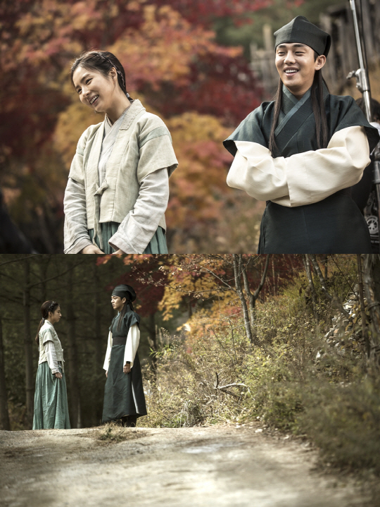 이런 가운데 11월 17일 '육룡이 나르샤' 제작진은 13회, 14회 연속 방송을 앞두고 극 중 낭만커플의 해맑은 미소가 담긴 사진을 공개하며 이목을 집중시켰다. 붉게 물든 단풍 숲을 나란히 거닐거나, 서로 마주보고 있는 이방원(유아인 분)과 분이(신세경 분)의 모습이 보는 사람의 입가에 흐뭇한 미소를 부른다.