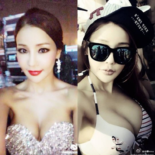 미나는 최근 자신의 웨이보에 비키니 차림으로 찍은 사진을 공개했다.