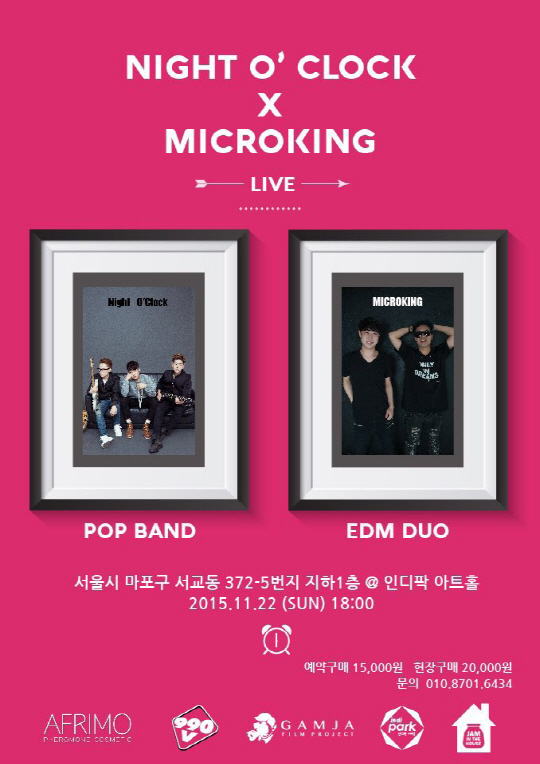 [스포츠조선 고재완 기자] 팝밴드 나잇어클락(Night O'Clock)과 EDM DJ 듀오 마이크로킹(Microking)이 콜라보 쇼케이스를 연다.