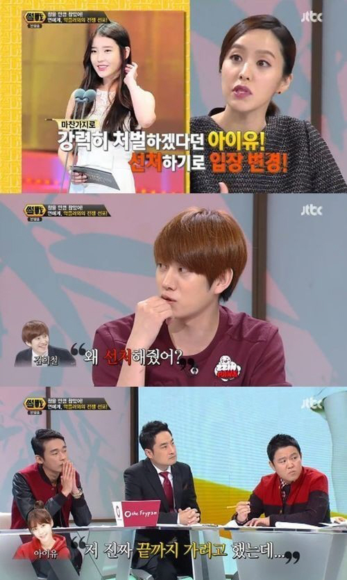 당시 김희철은 아이유의 사례가 화제에 오르자, "제가 직접 아이유에게 왜 선처해줬는지 물어봤다"고 말문을 열었다.