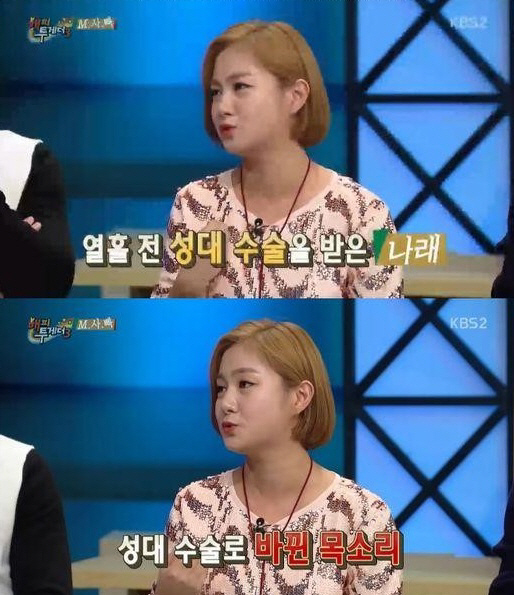 '해피투게더3' 개그우먼 박나래가 성대 수술을 한 사실을 밝혔다.