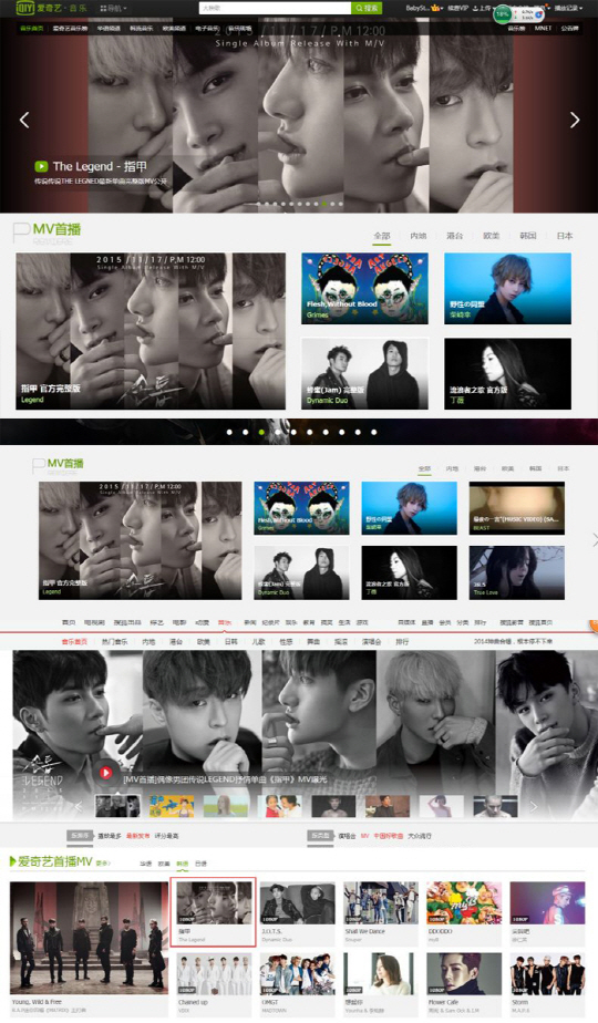 전설의 신곡 '손톱'은 중국 최대 동영상 사이트 투도우를 비롯한 아이치이, 유쿠 등 중국의 유명 포털 사이트에서 신곡 '손톱'의 발매 소식이 메인을 장식하며 대륙에서의 인기를 입증했다.
