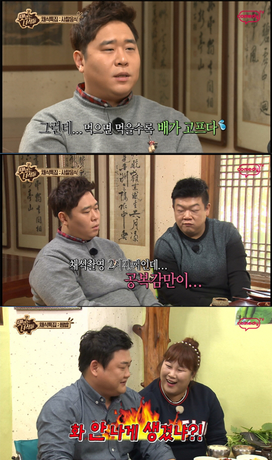 20일 오후 8시20분 방송된는 코미디TV '맛있는 녀석들'에서는 오직 채소로만 식사를 해야 하는 뚱 MC들의 모습이 그려진다.
