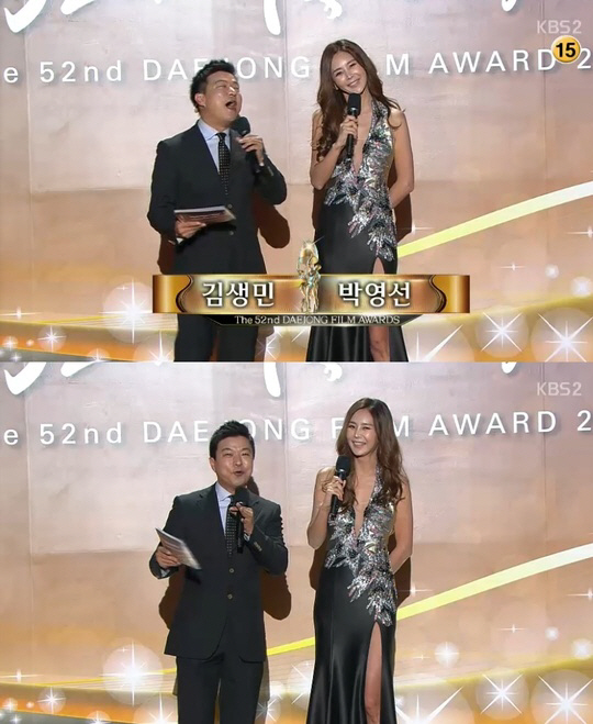 이날 박영선은 방송인 김생민과 함께 레드카펫 진행을 맡았다. 긴 공백기에도 박영선은 변함 없이 아름다운 미모와 늘씬한 몸매를 자랑해 시선을 끌었다.