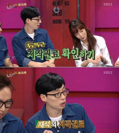 이에 MC 유재석은 "나도 가요제 곡이 있어서 공동작사가로 올라가 저작권료고 나올 때가 있는데 2만원 정도더라"고 밝혔다.