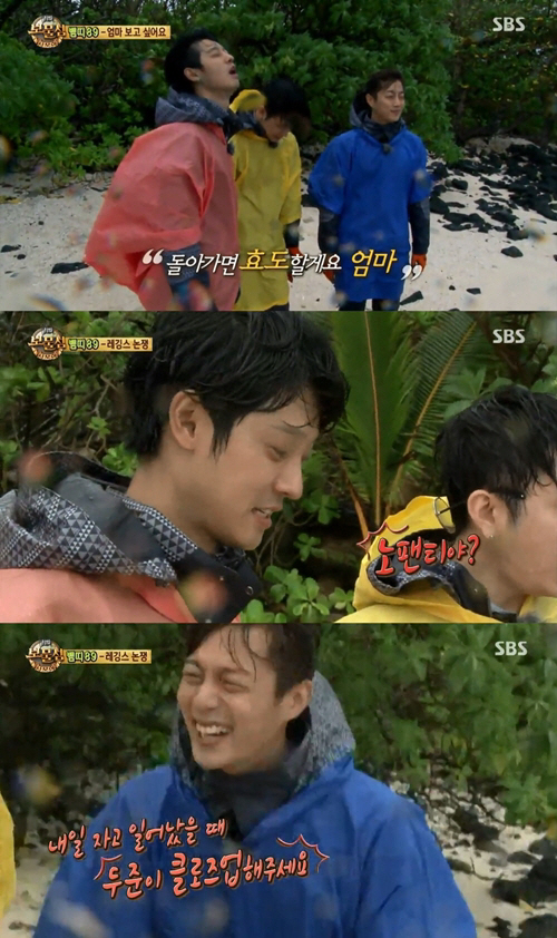 이날 폭우 속에서 생존하느라 온몸이 비에 젖은 윤두준, 용준형, 정준영은 생존 중간마다 "살았어? 죽었어?"라며 안부를 물어봐 궁금증을 불러일으켰다.