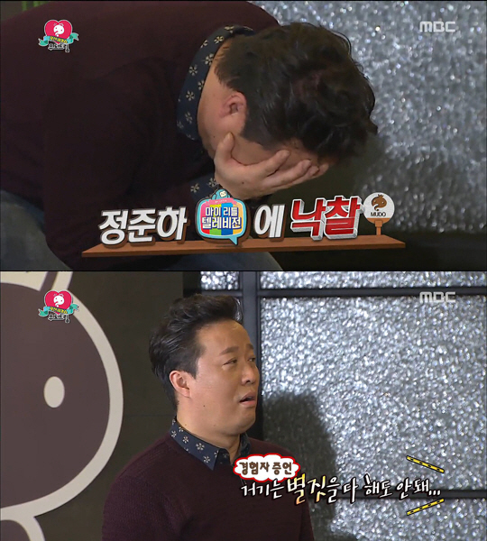 이날 정준하는 예상치도 못한 '마이리틀텔레비전(마리텔)' 팀의 500만원 입찰에 경악했다. 조용하던 마리텔 제작진은 갑작스럽게 정준하에 입찰한 것. 유재석조차 "500만원이요?"라며 당황할 정도였다.