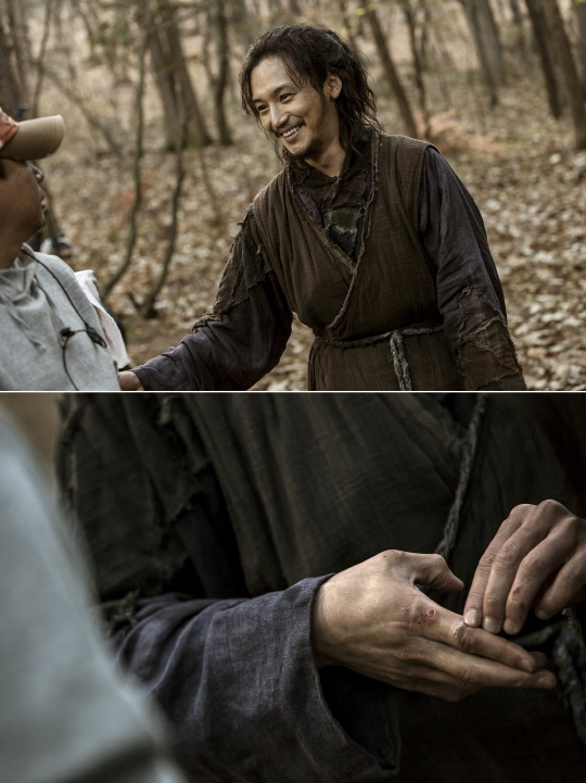 제작진에 의해 공개된 사진을 보면 변요한의 손은 여기저기가 긁히고 심한 곳은 피부가 벗겨져 속살이 보일 정도로 상처가 나있다. 여기에 계속되는 야외촬영으로 까칠하고 투박해진 손은 진정한 배우의 자세와 프로페셔널의 향기가 느껴져 안타까움을 더해 가슴을 뭉클하게 한다.