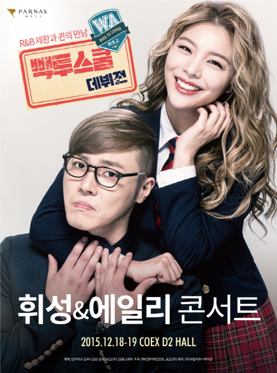 휘성과 에일리는 오는 12월 18, 19일 이틀 동안 서울 삼성동 소재의 코엑스 D2홀에서 합동콘서트 '빽투스쿨(Back to School)'을 개최하고 팬들과 만난다.