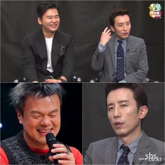 최근 진행된 녹화에서 박진영은 함께 'K팝스타'의 심사위원을 하고 있는 양현석의 비밀을 폭로해 관심을 집중시켰다. 김제동이 "심사위원간의 경쟁도 치열하죠?"라며 질문을 건네자 그는 "현석이 형은 (경쟁의식이) 있는 거 같아요. 심사평 괜찮은 걸 대여섯 개 적어와서 맞는 게 나왔을 때 그걸 갖다 (사용하는 거 같아요)"라고 밝혀 웃음을 자아냈다.