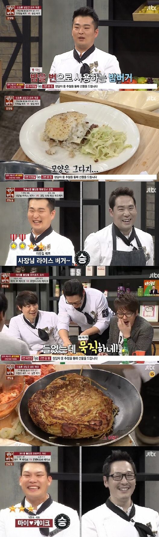 반면 김풍은 파스타와 스피니쉬 오믈렛을 응용한 '로맨티스타 케이크'를 선보였다. 백김치에 젓갈까지 들어간 새로운 케이크였지만, 비주얼은 케이크라기 보다는 푸짐한 전에 가까웠다. 모두들 "이찬오 셰프의 요리와 너무 비교된다"며 웃었다.
